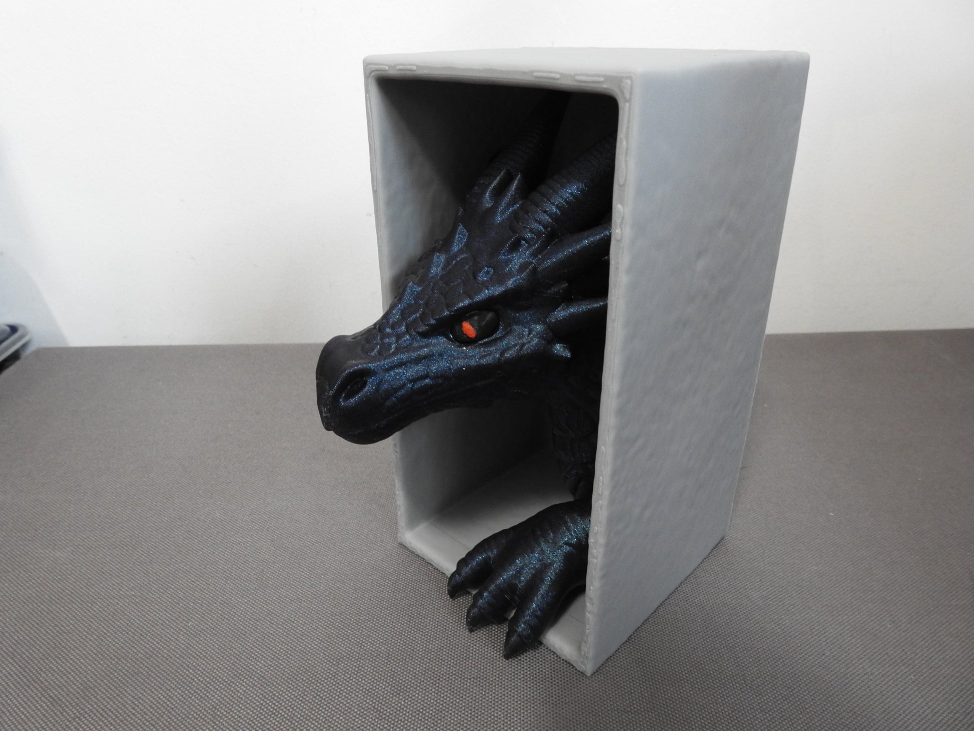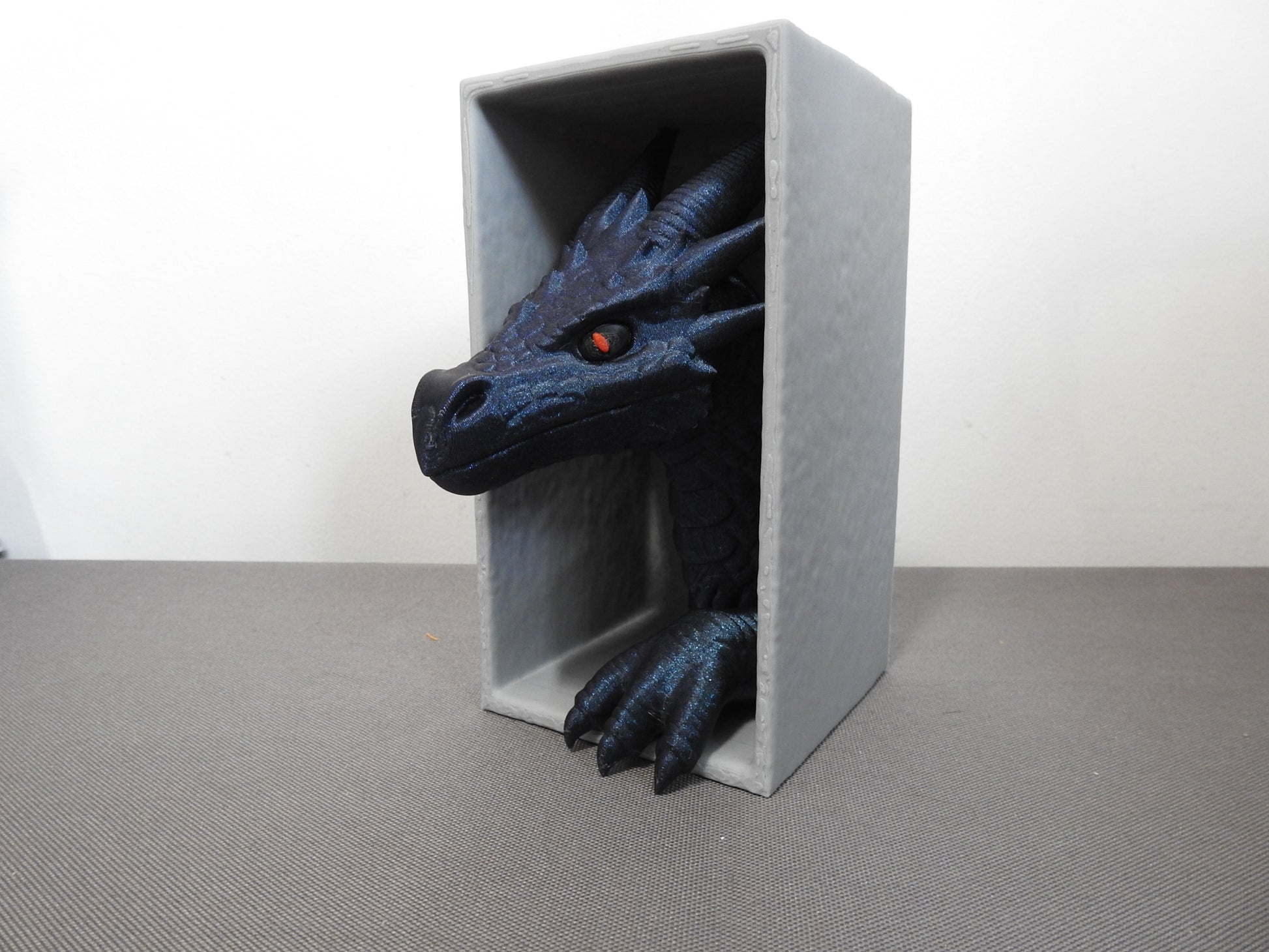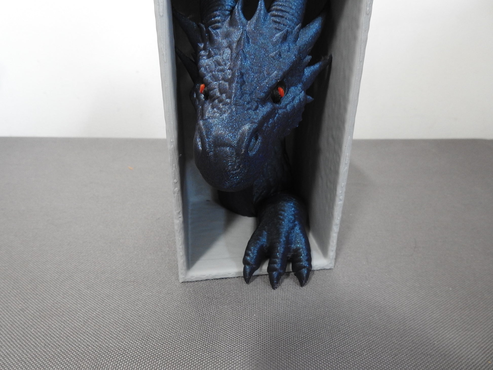 - Design Highlights:The dragon's features are meticulously printed, showcasing a vibrant blue color with red eyes. It's encased in a protective box, ensuring safekeeping and display. The book's design complements the dragon, making it a unique piece of decor or a collectible item.
