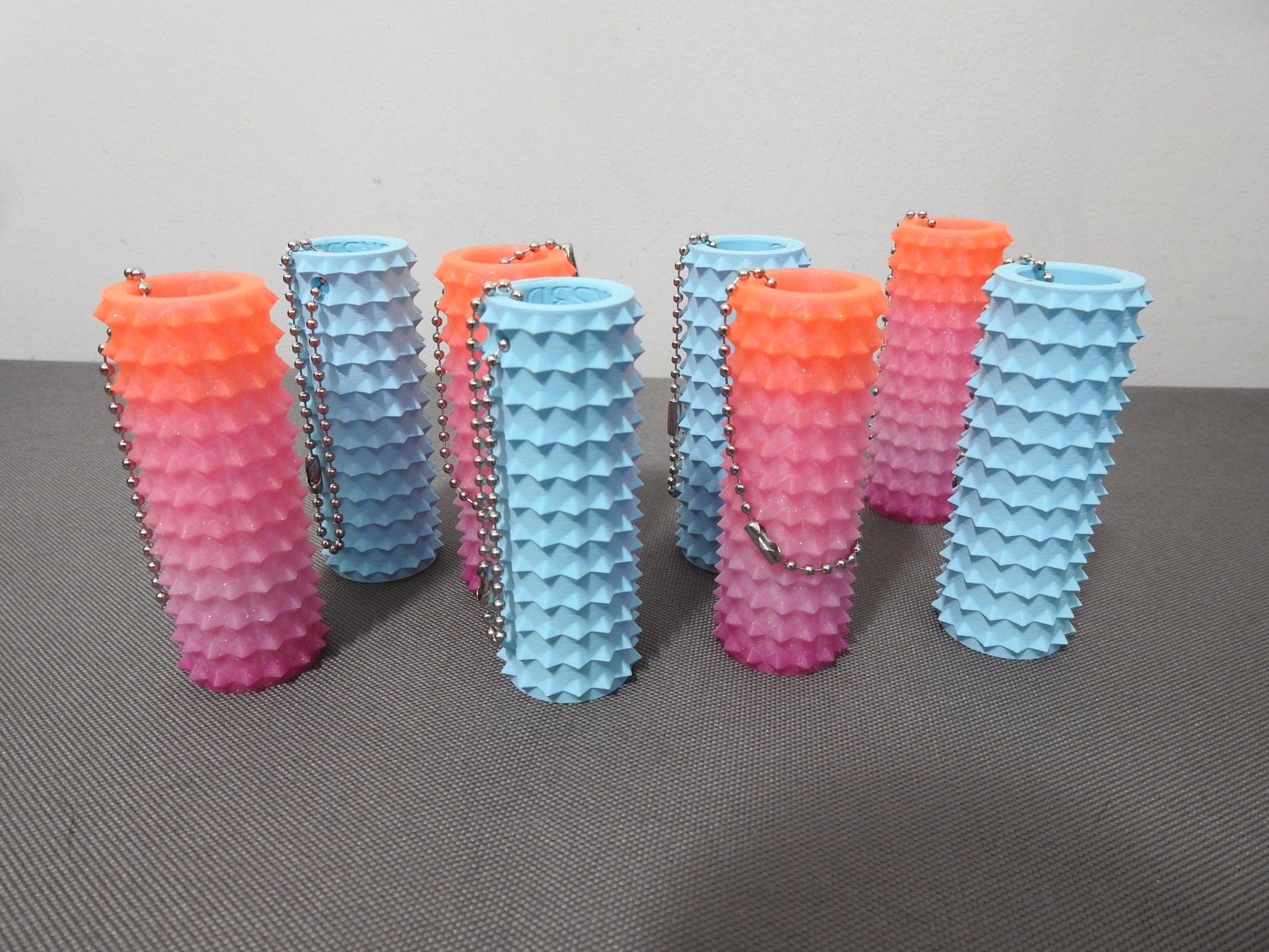 - The keyrings feature a gradient color scheme, transitioning from orange to pink. The 3D print adds texture, making each keyring visually appealing. Choose from various vibrant options to match your style. š